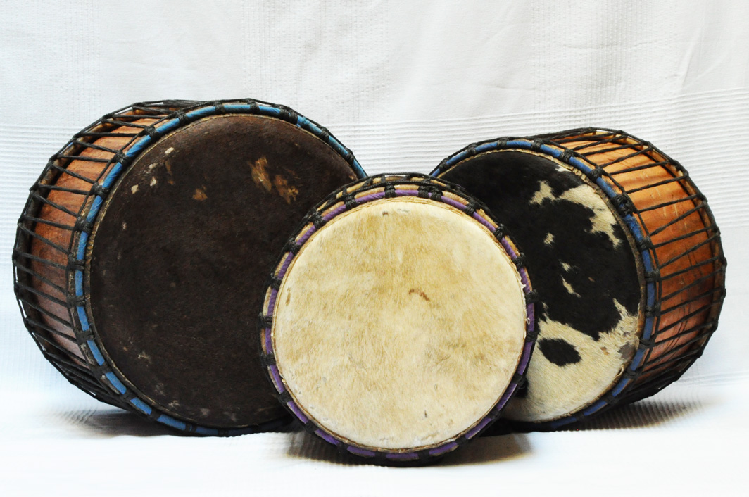 I set di tre mini-tamburi bassi Ghana sono molto usate dalle orchestre di strada ghanesi, perché hanno il vantaggio di essere leggere e poco ingombranti.